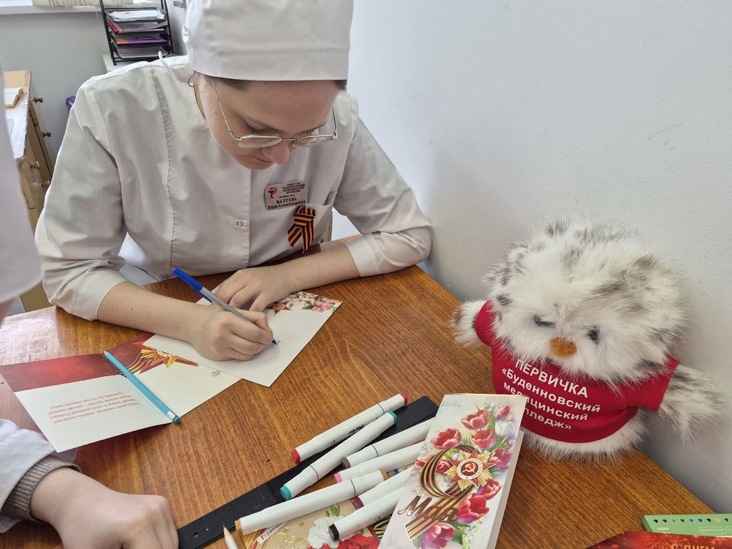 В преддверии Великого праздника — 9 Мая Дня Победы — обучающиеся Буденновского медицинского колледжа и активисты Движения Первых объединили усилия в рамках Всероссийской акции «Внуки по переписке».