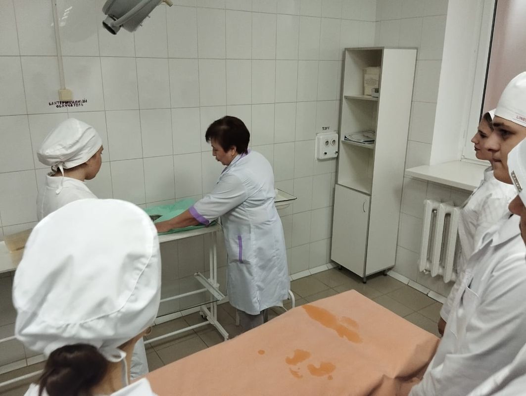 Мероприятие провела старшая медицинская сестра Белякова Татьяна Васильевна, которая познакомила будущих специалистов с особенностями работы отделения и повседневной деятельностью медицинского персонала.