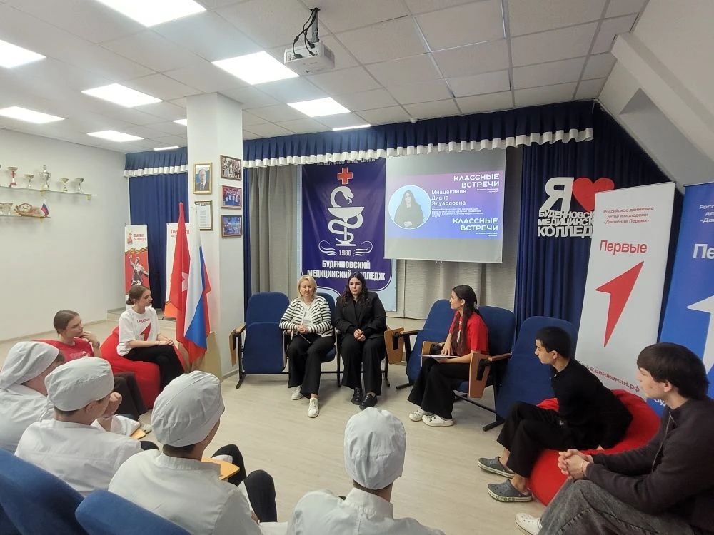Сегодня у нас состоялась очень важная и вдохновляющая встреча! В гостях в Буденновском медицинском колледже были Главный специалист по организации работы местного отделения Движения Первых Буденновского муниципального округа Диана Эдуардовна Мнацаканян и специалист по организации работы местного отделения Движения Первых Буденновского муниципального округа Елена Сергеевна Руднева .