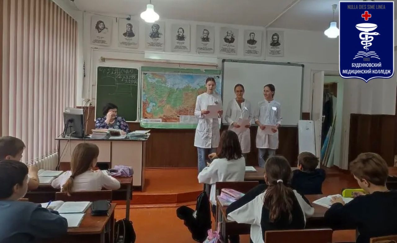 Обучающиеся колледжа провели информационную беседу ко Дню борьбы со СПИДом на тему «Вместе против СПИДа: знание - защита» для учащихся МОУ СОШ №4 г. Буденновска.