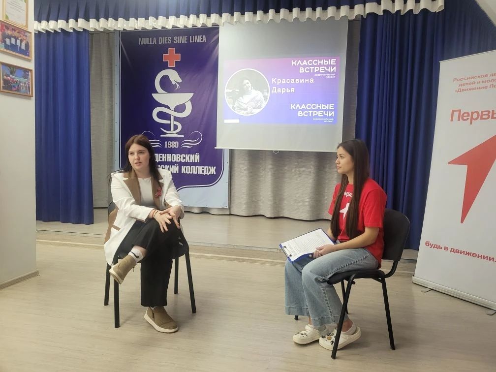 На встрече выпускница поделилась своим опытом адаптации к вузу, рассказала о новых возможностях и вызовах в студенческой жизни, а также подчеркнула важность непрерывного образования и стремления к профессиональному росту.
