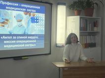 Гостем встречи стала старшая операционная медицинская сестра операционного блока ГБУЗ СК «Краевой центр специализированных видов медицинской помощи №1 Позднякова Надежда Николаевна, выпускница нашего колледжа. В теплой и доверительной атмосфере она поделилась со студентами историей своего профессионального пути, рассказала о тонкостях работы в операционном блоке, о взаимодействии с хирургами и, конечно, о тех человеческих качествах, без которых в этой профессии не обойтись — ответственности, стрессоустойчивости, умении работать в команде.