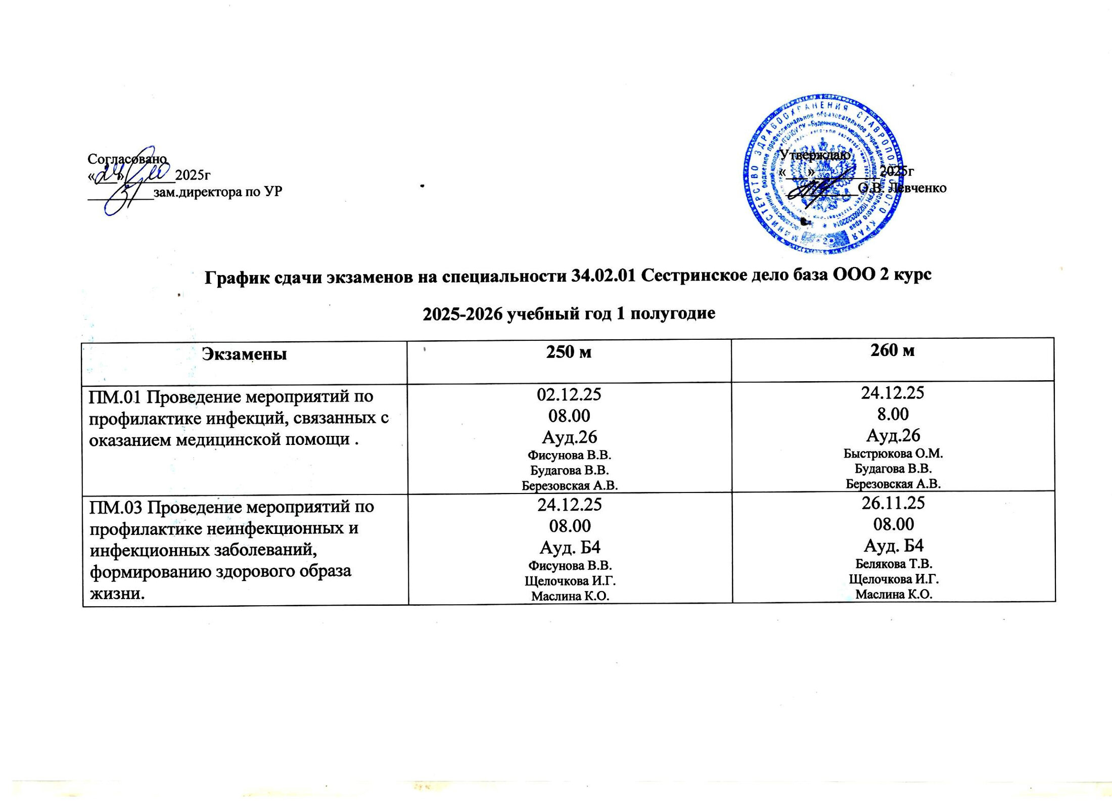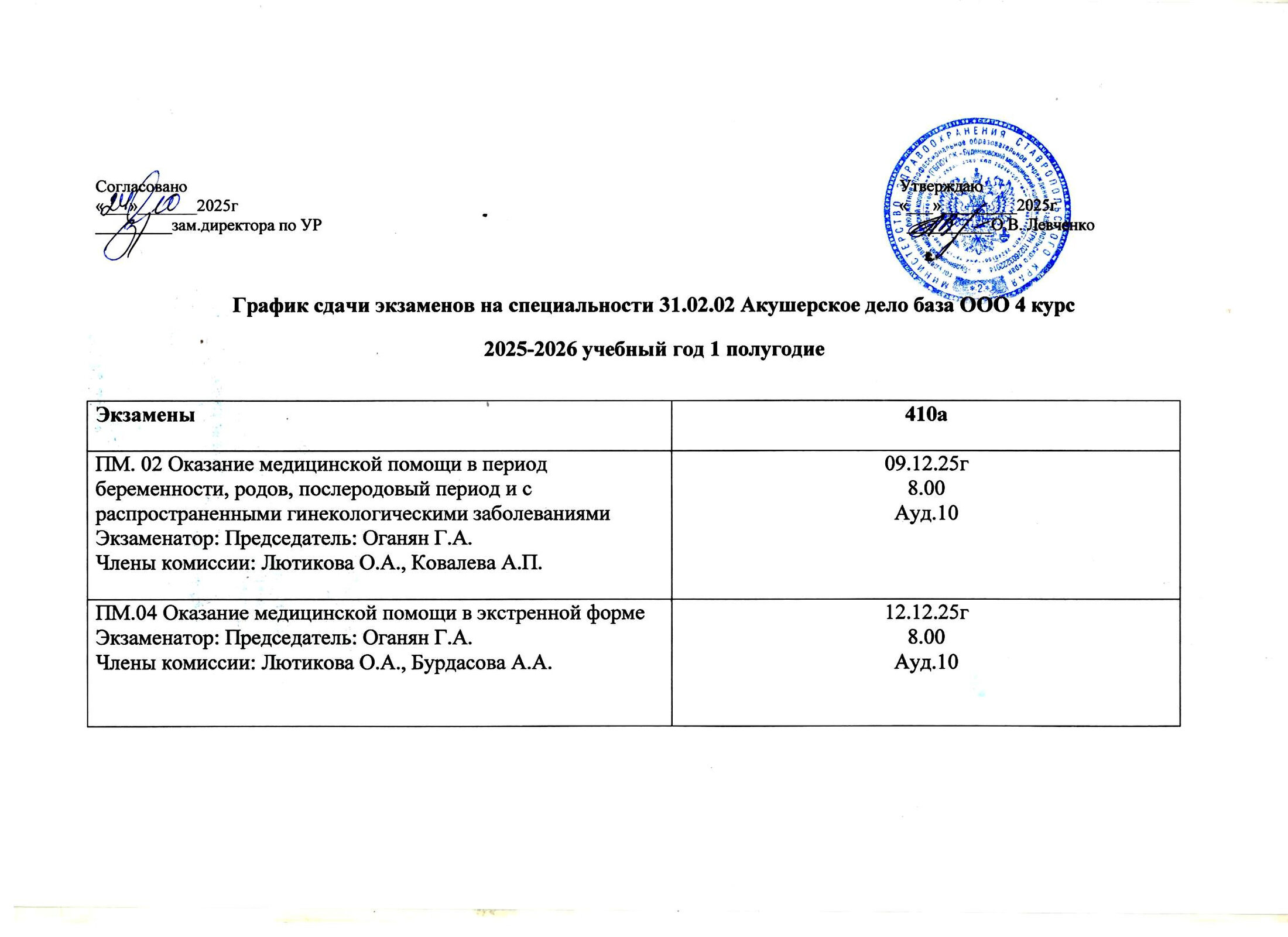 График сдачи экзаменов по специальности "Акушерское дело "