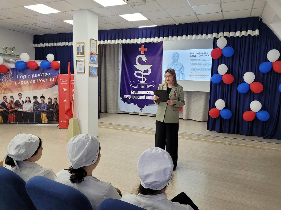 В Буденновском медицинском колледже прошла важная лекция, посвященная актуальной теме кибербезопасности. Социальный педагог колледжа провела познавательное занятие для обучающихся, охватив ключевые аспекты защиты в цифровом пространстве.