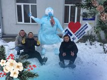 Сегодня студенческая команда решила не только убрать снег с территории, но и создать что-то особенное - снежного медика! Вооружившись лопатами и воображением, они превратили обычный сугроб в удивительного медицинского работника.
